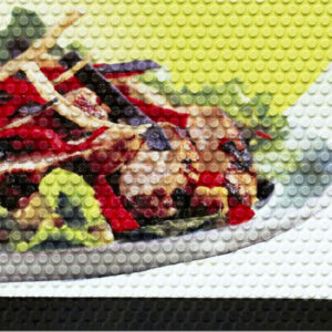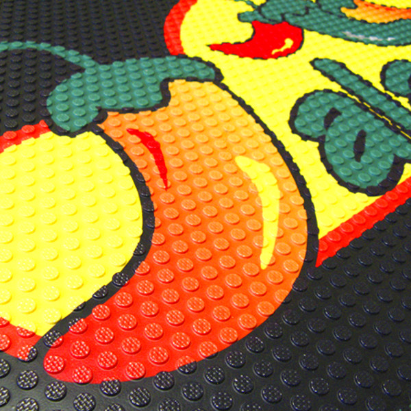 A Super Scrape Impresions egyedi szennyfogó szőnyeg fotórealisztikus, nagy felbontású és teljes színskálából álló képek, feliratok és egyéb grafikák megjelenítésére alkalmas kültéren. A szőnyeg nitril gumi alapú, ellenáll a növényi- és állati zsíroknak, illetve a szerves olajoknak, ezért ideális választás büfék, vendéglők, élelmiszerüzletek bejárataiba vagy a kiszolgáló pultok elé fektetve. A kis méretű, kör alakú (tabletta formájú) tisztító felülete leszedi a nagyobb méretű sáros szennyeződéseket.